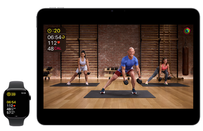 Apple Watch расширяют возможности Fitness+ с помощью персонализированных показателей на экране в режиме реального времени, таких как частота сердечных сокращений, количество сожжённых калорий и кольца активности.26 А ещё вы можете совершать прогулки, пробежки и медитации с аудиосопровождением, используя только часы и наушники AirPods.