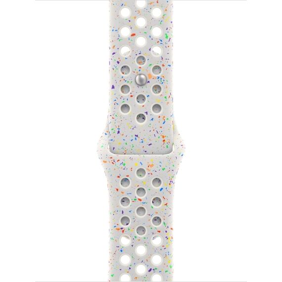 Спортивные ремешки Nike с перфорацией, отлитой под давлением для воздухопроницаемости, долговечны и в то же время удивительно мягки. На них нанесены разноцветные хлопья, которые создают случайный рисунок, что делает каждый ремешок совершенно уникальным. Гладкий, плотный материал элегантно облегает запястье и приятно прилегает к коже. Алюминиевая застежка на булавку и вытачку придает булавке свежий матовый оттенок.