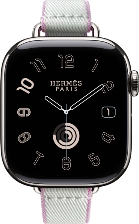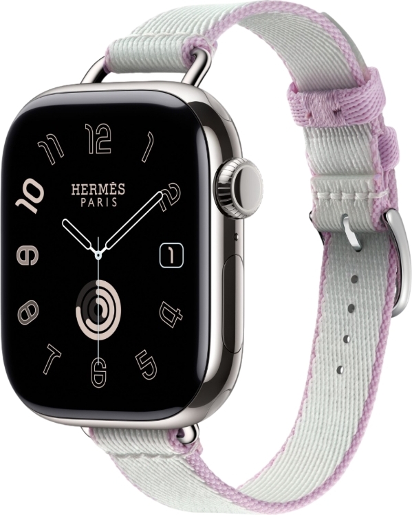 Apple Watch Series 10 Hermes (42 мм) | Twill Jump Attelage Single Tour Gris Platine/Mauve