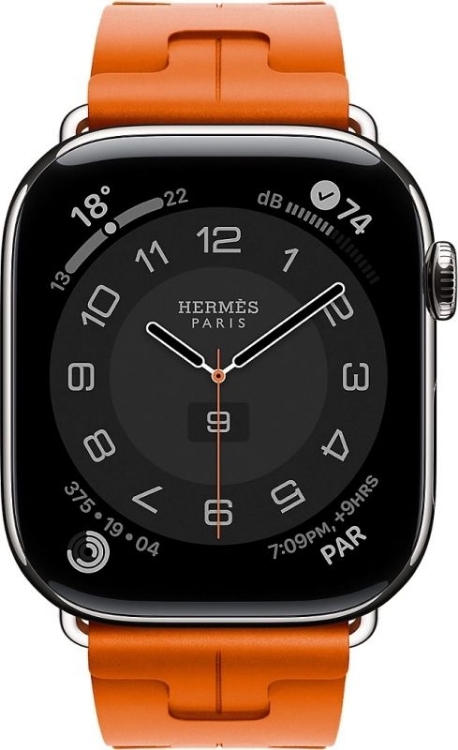 Apple Watch Series 10 Hermes (42 мм) | Корпус из титана цвета Natural, ремешок Hermès Kilim Single Tour цвета Orange