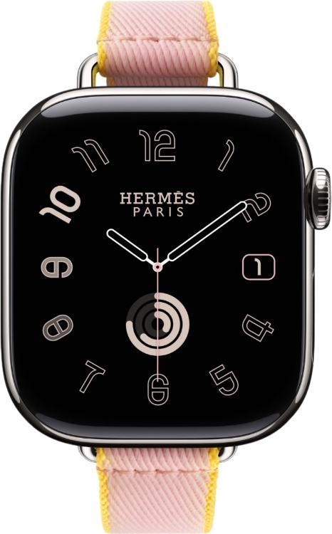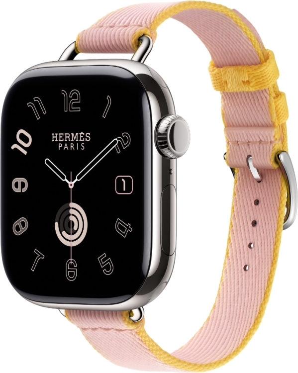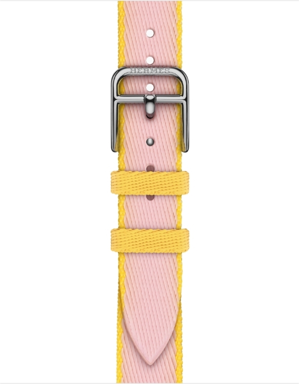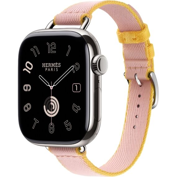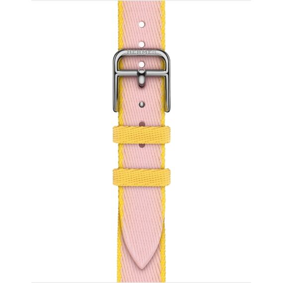 Apple Watch Series 10 Hermes (42 мм) | Twill Jump Attelage Single Tour Rose Sakura/Jaune de Naples