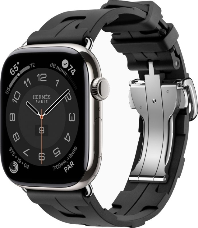 Apple Watch Series 10 Hermes (46 мм) | Корпус из титана цвета Natural, ремешок Hermès Kilim Single Tour цвета Noir