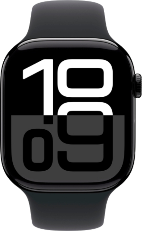 Apple Watch Series 10 (42 мм) | Корпус из алюминия цвета Jet Black, спортивный ремешок цвета Black
