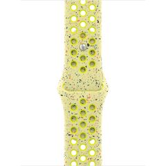 Ремешок Apple Watch Nike Sport Band | Volt Splash - с портивные ремешки Nike с перфорацией, отлитой под давлением для воздухопроницаемости, долговечны и в то же время удивительно мягки. На них нанесены разноцветные хлопья, которые создают случайный рисунок, что делает каждый ремешок совершенно уникальным. Гладкий, плотный материал элегантно облегает запястье и приятно прилегает к коже. Алюминиевая застежка на булавку и вытачку придает булавке свежий матовый оттенок.